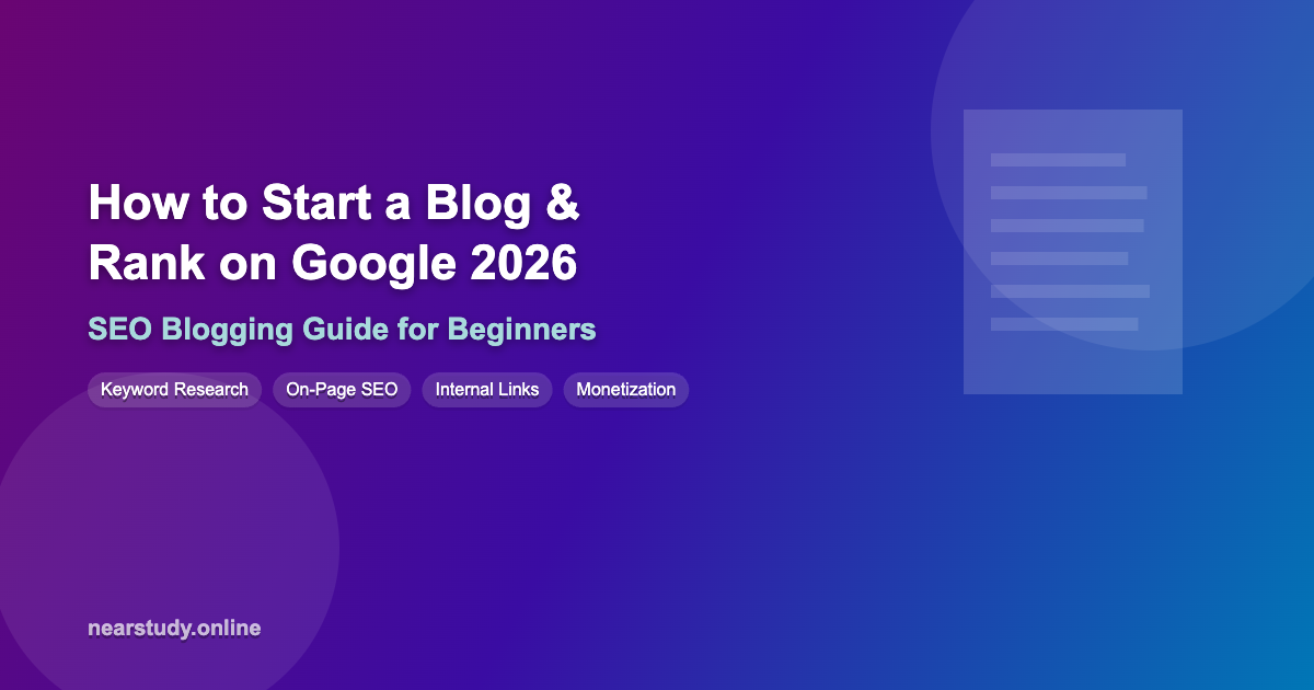 Learn how to start a blog and rank on Google in 2026. Complete beginner guide covering niche selection, keyword research, on-page SEO, internal linking, page speed, and blog monetization strategies.